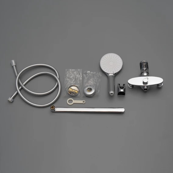 Аэратор, Металлическая розетка, Эксцентрики, Душевой шланг, Душевая лейка, Держатель для душевой лейки