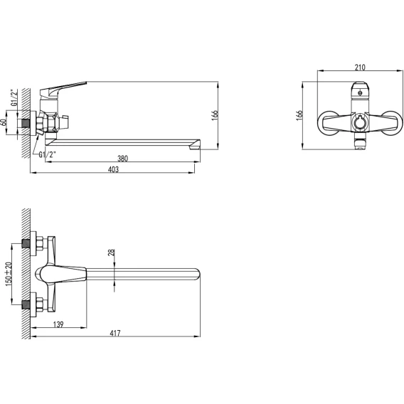 Смеситель для ванны AWP Tair S3051C универсальный, с душевым гарнитуром, хром