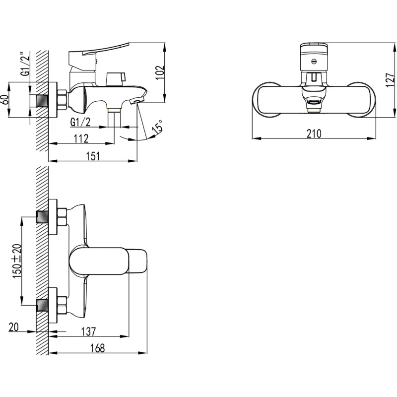 Смеситель для ванны AWP Teza S0814C с душевым гарнитуром, хром