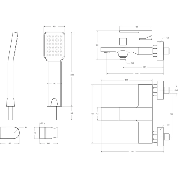 Аэратор, Металлическая розетка, Эксцентрики, Душевой шланг, Душевая лейка, Держатель для душевой лейки