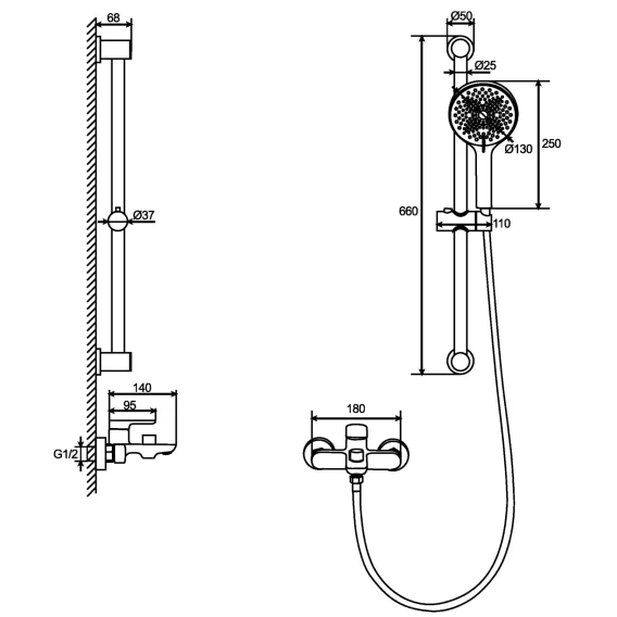 Крепление, Аэратор, Металлическая розетка, Эксцентрики, Душевой шланг, Душевая лейка, Держатель для душевой лейки, Штанга душевая