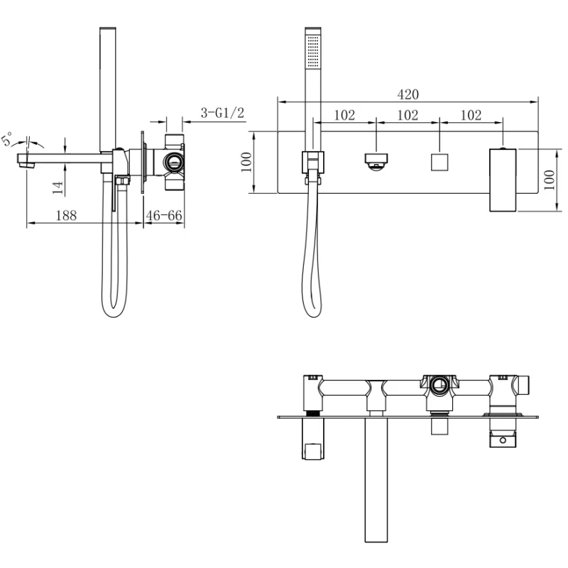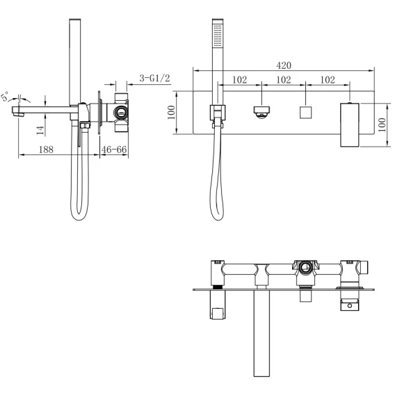 Аэратор, Душевой шланг, Душевая лейка, Подключение для душевого шланга с держателем, Излив, Скрытая монтажная часть