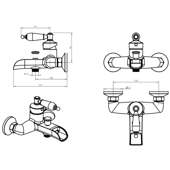 Смеситель для ванны Boheme Vogue Swarovski 203-BSW бронза/черный