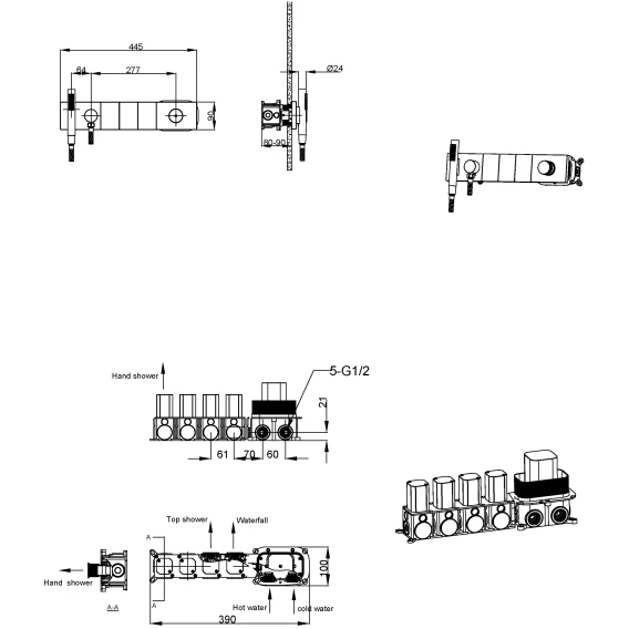 Душевой шланг, Душевая лейка, Подключение для душевого шланга с держателем, Скрытая монтажная часть