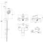 Крепление, Аэратор, Металлическая розетка, Эксцентрики, Душевой шланг, Душевая лейка, Держатель для душевой лейки, Мыльница, Штанга душевая