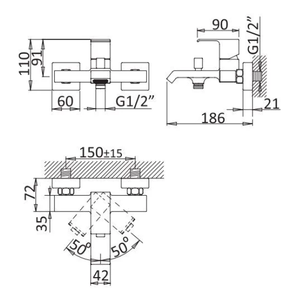 Смеситель для ванны Cezares Porta PORTA-VM-NOP