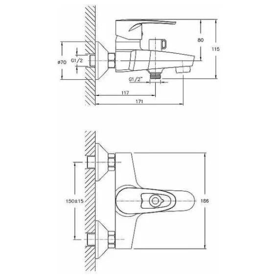 Смеситель для ванны D-Lin D130422 с душевым гарнитуром, хром
