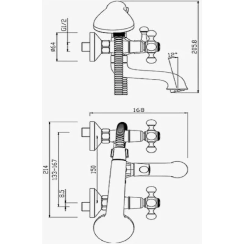 Смеситель для ванны D-Lin D130810 с душевым гарнитуром, хром