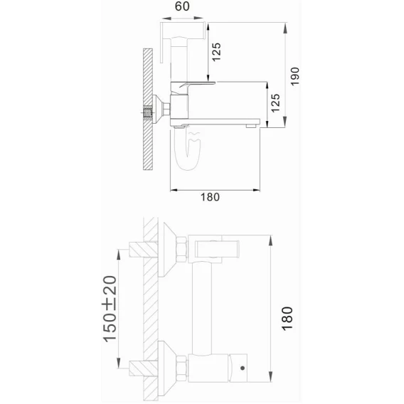Смеситель для ванны D-Lin D181201 с гигиеническим душем, хром