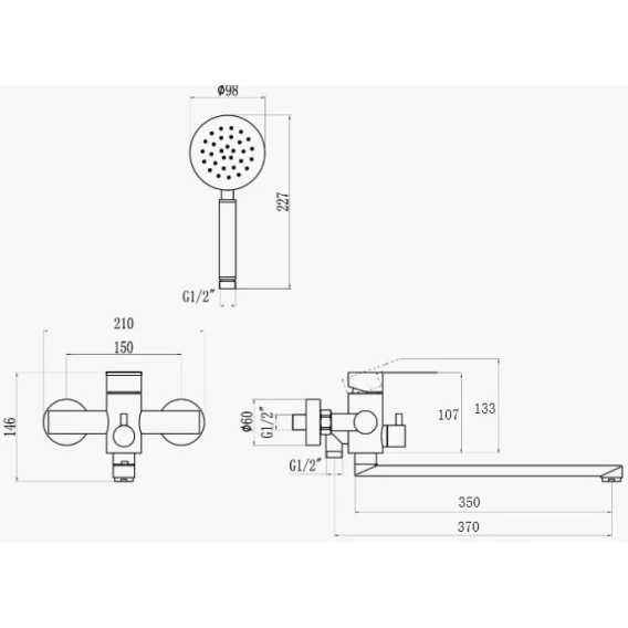 Аэратор, Металлическая розетка, Эксцентрики, Душевой шланг, Душевая лейка, Держатель для душевой лейки