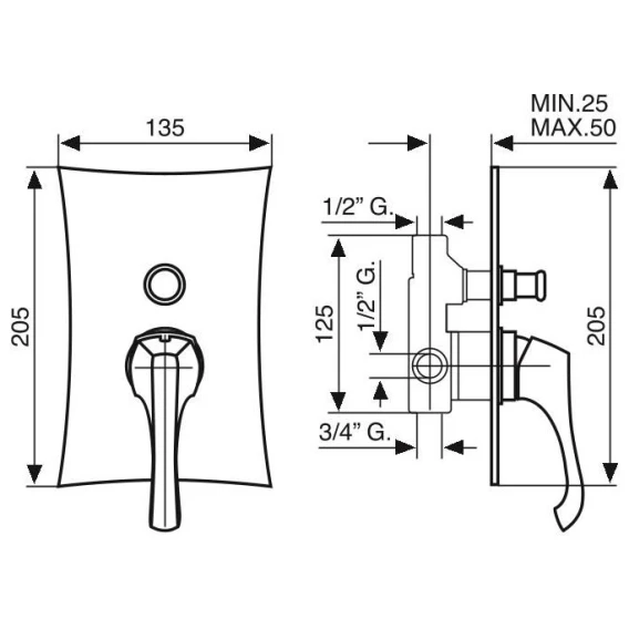 Смеситель для ванны Emmevi Ares 76019/NS встраиваемый, никель матовый