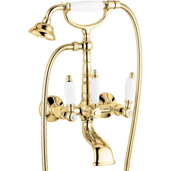 Смеситель для ванны Emmevi Deco Ceramic 121611/OR с душевым гарнитуром, золотой