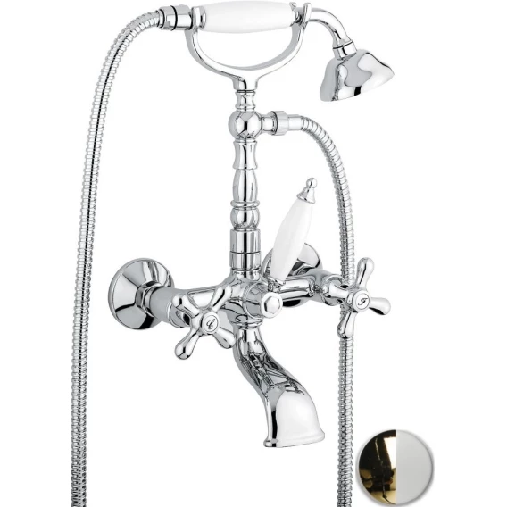 Смеситель для ванны Emmevi Deco Old 12611/BO с душевым гарнитуром, золотой/белый