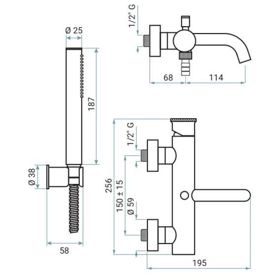 Аэратор, Металлическая розетка, Эксцентрики, Душевой шланг, Душевая лейка, Держатель для душевой лейки