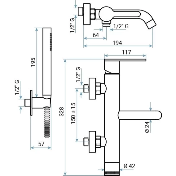Аэратор, Металлическая розетка, Эксцентрики, Душевой шланг, Душевая лейка, Держатель для душевой лейки