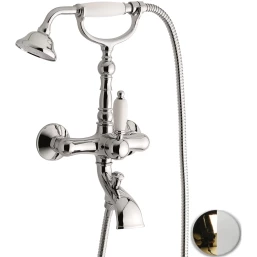 Смеситель для ванны Emmevi Laguna 40011/BO с душевым гарнитуром, золотой/белый
