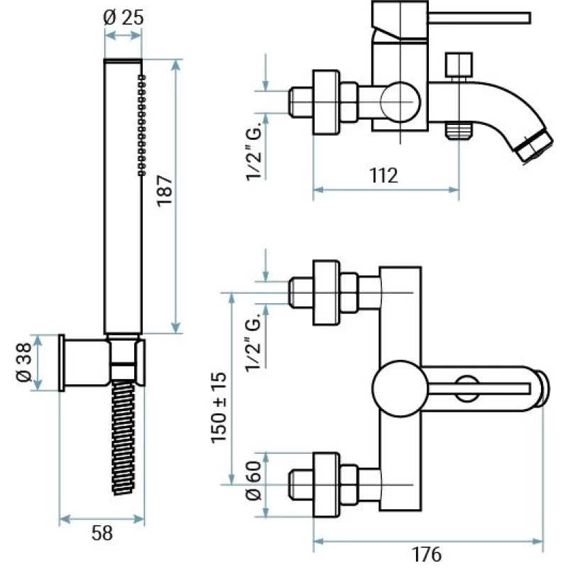 Аэратор, Металлическая розетка, Эксцентрики, Душевой шланг, Душевая лейка, Держатель для душевой лейки