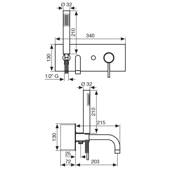 Аэратор, Душевой шланг, Душевая лейка, Подключение для душевого шланга с держателем, Излив, Скрытая монтажная часть