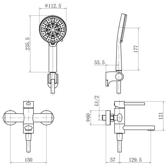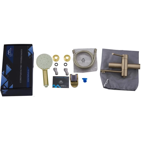 Аэратор, Металлическая розетка, Эксцентрики, Душевой шланг, Душевая лейка, Держатель для душевой лейки