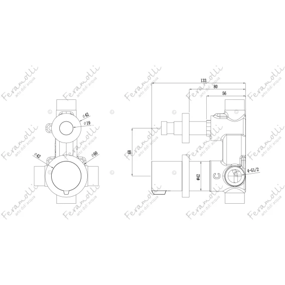 Смеситель для ванны Feramolli Dante ORS8819F CoolStart, встраиваемый, медь матовая