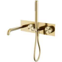 Смеситель для ванны Feramolli Sole S251-23GL CoolStart, встраиваемый, с душевым гарнитуром, золотой матовый