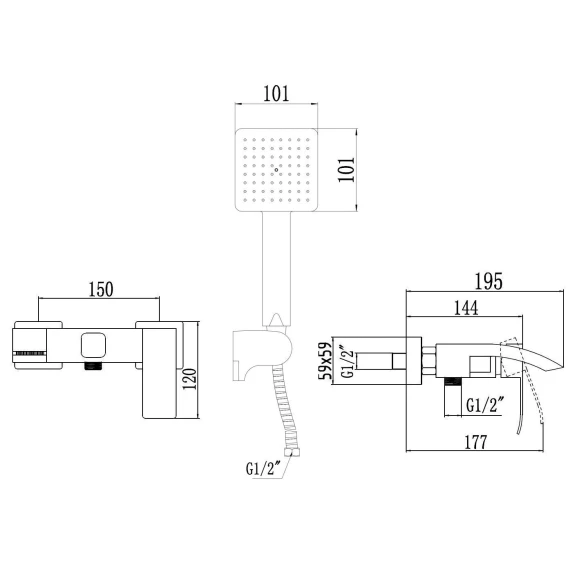 Аэратор, Металлическая розетка, Эксцентрики, Душевой шланг, Душевая лейка, Держатель для душевой лейки