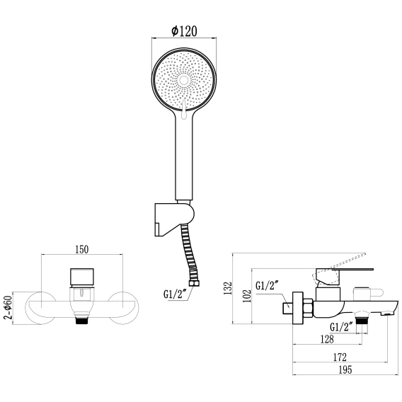 Аэратор, Металлическая розетка, Эксцентрики, Душевой шланг, Душевая лейка, Держатель для душевой лейки
