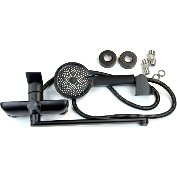 Смеситель для ванны Fmark FS8824H универсальный, с душевым гарнитуром, черный матовый