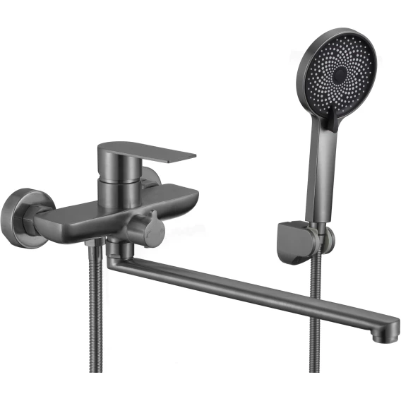 Смеситель для ванны Fmark FS8824Q универсальный, с душевым гарнитуром, графит