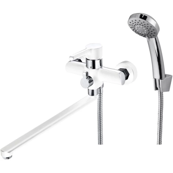 Смеситель для ванны G.Lauf ZOK7-A036PW универсальный, с душевым гарнитуром, хром/белый матовый