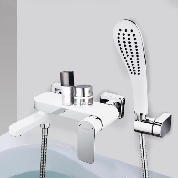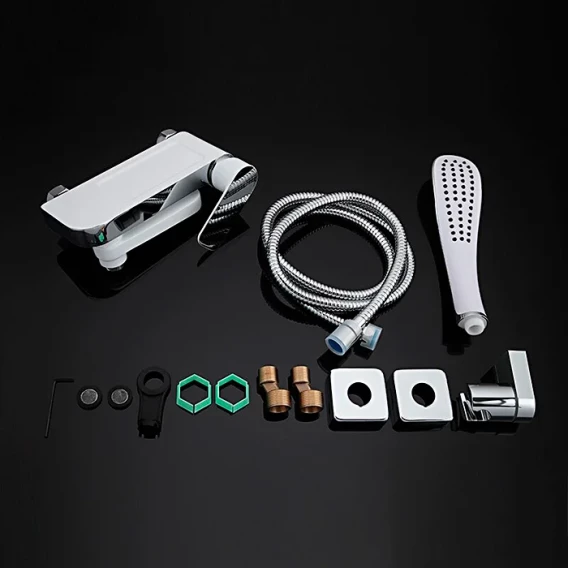 Аэратор, Металлическая розетка, Эксцентрики, Душевой шланг, Душевая лейка, Держатель для душевой лейки, Полочка