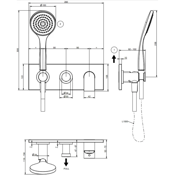 Душевой шланг, Душевая лейка, Подключение для душевого шланга с держателем