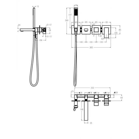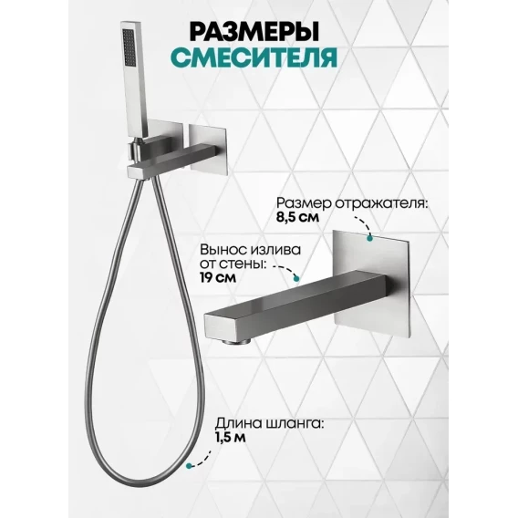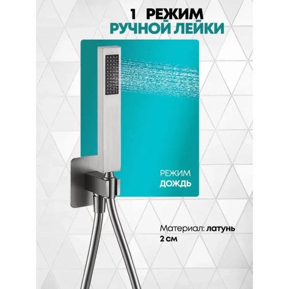 Аэратор, Душевой шланг, Душевая лейка, Подключение для душевого шланга с держателем, Излив, Скрытая монтажная часть