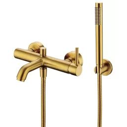 Смеситель для ванны Grocenberg GB8099GL с душевым гарнитуром, золотой брашированный