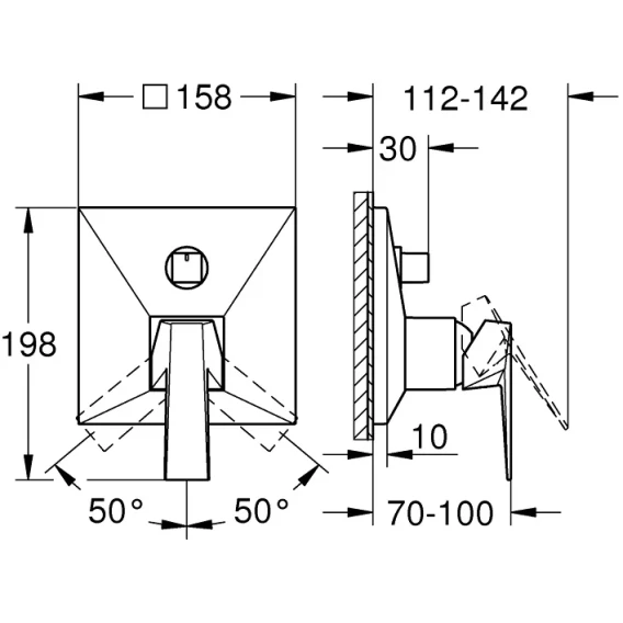 • настенная панель с GROHE FastFixation (скрытое уплотнение штока, скрытое крепление)