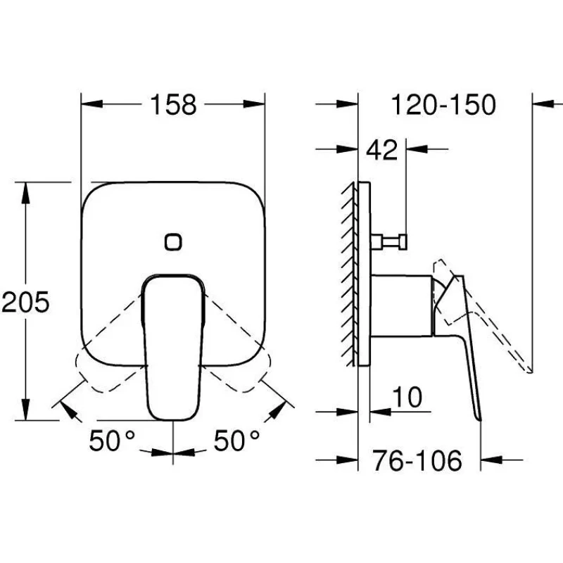 • настенная панель с GROHE FastFixation (скрытоеуплотнение штока, скрытое крепление)