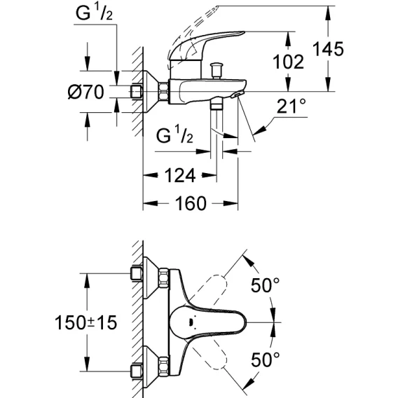 • GROHE TileFix регулируемая глубина верхнего и нижнего креплений