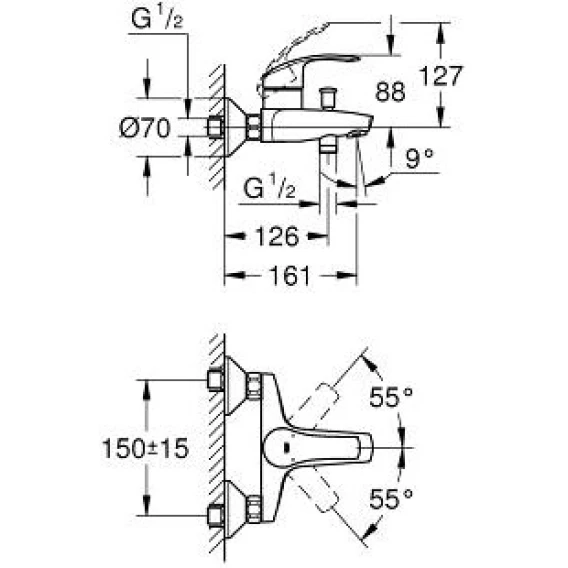 • GROHE QuickFix Plus(регулируемое расстояние между настенными креплениями штанги позволяет использовать для монтажа уже имеющиеся отверстия в стене)
