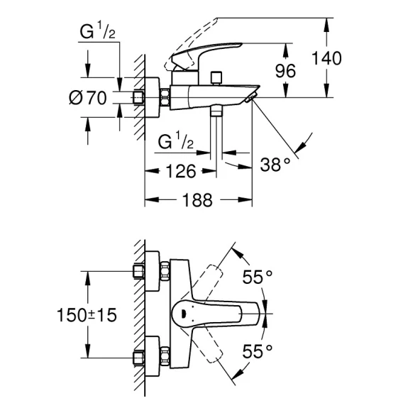 • GROHE TileFix регулируемая глубина верхнего и нижнего креплений