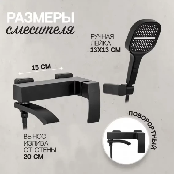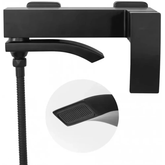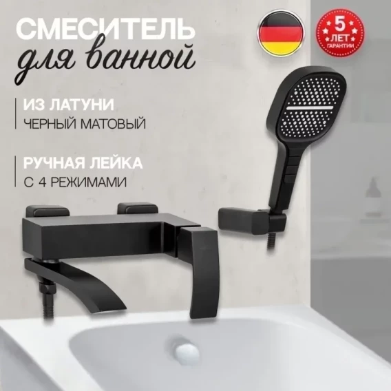Смеситель для ванны Hansberge H4077BL с душевым гарнитуром, черный матовый