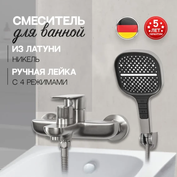 Смеситель для ванны Hansberge H4099NK с душевым гарнитуром, никель
