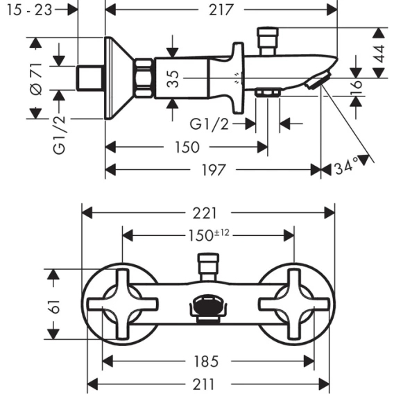 Смеситель для ванны Hansgrohe Logis Classic 71240000 + 26275000
