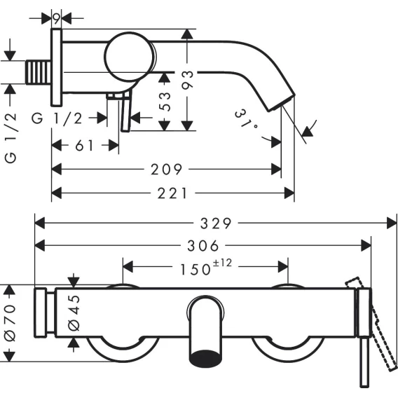 Смеситель для ванны Hansgrohe Tecturis S 73422000
