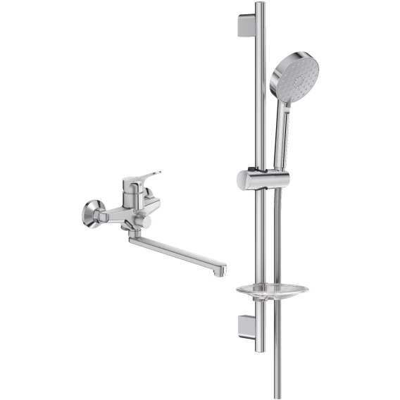 Крепление, Аэратор, Металлическая розетка, Эксцентрики, Душевой шланг, Душевая лейка, Держатель для душевой лейки, Мыльница, Штанга душевая