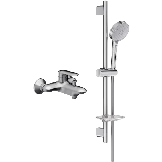 Крепление, Аэратор, Металлическая розетка, Эксцентрики, Душевой шланг, Душевая лейка, Держатель для душевой лейки, Мыльница, Штанга душевая