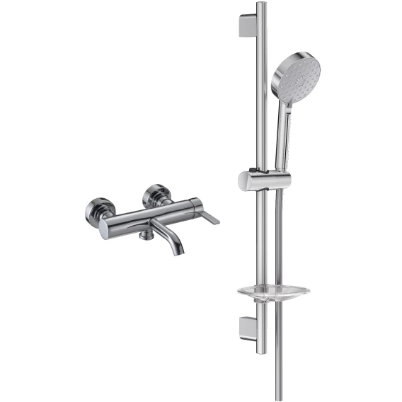 Крепление, Аэратор, Металлическая розетка, Эксцентрики, Душевой шланг, Душевая лейка, Держатель для душевой лейки, Мыльница, Штанга душевая
