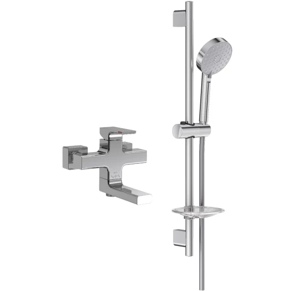 Крепление, Аэратор, Металлическая розетка, Эксцентрики, Душевой шланг, Душевая лейка, Держатель для душевой лейки, Мыльница, Штанга душевая