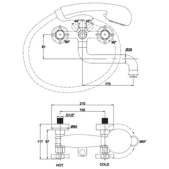 Аэратор, Металлическая розетка, Эксцентрики, Душевой шланг, Душевая лейка, Держатель для душевой лейки