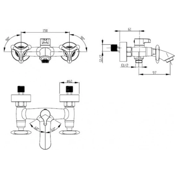 Смеситель для ванны Kaiser Trio 57022-1