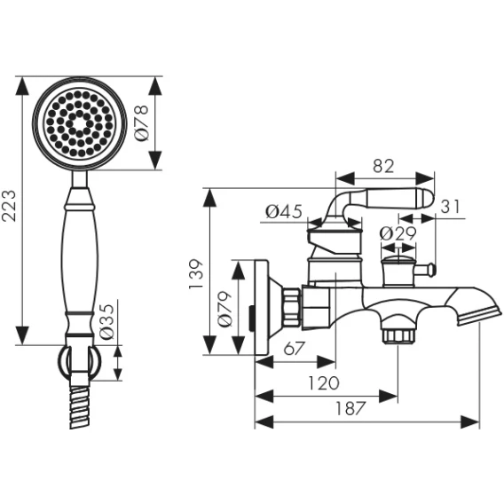 Аэратор, Металлическая розетка, Эксцентрики, Душевой шланг, Душевая лейка, Держатель для душевой лейки